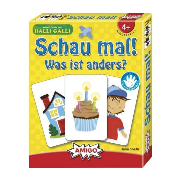 Schau mal ist ein einfaches Kinderspiel ab 4 Jahre, das manch einen Erwachsenen zum Verzweifeln bringt