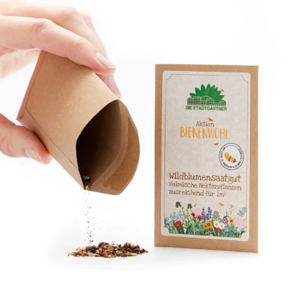 Jeder Umschlag enthält Saatgut für einen Quadratmeter heimischer Nektarpflanzen