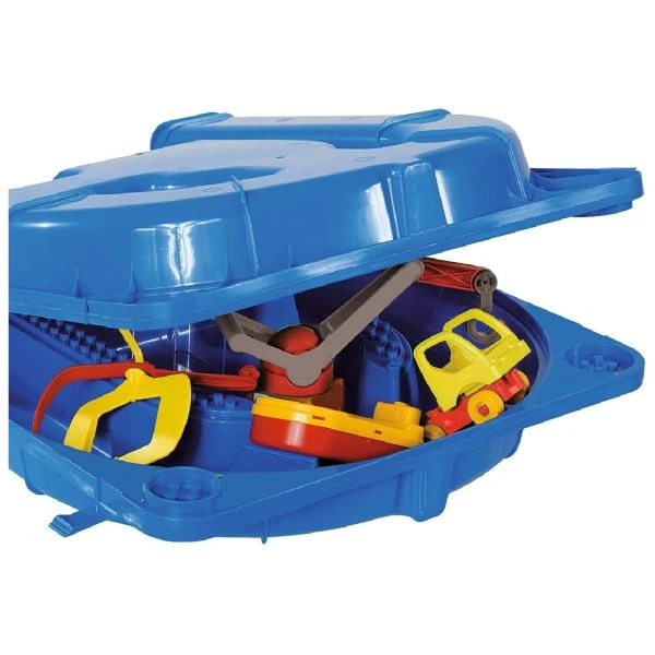 Im Lieferumfang sind eine befahrbare Brücke, eine Ladekran, ein Boot, eine Spielfigur, ein LkW, eine Brücke sowie lustige Aufkleber zum Selbstbekleben enthalten. Die vielseitige Wasserbahn lässt sich nach Spielende leicht entleeren, zusammenklappen und dadurch platzsparend verstauen.