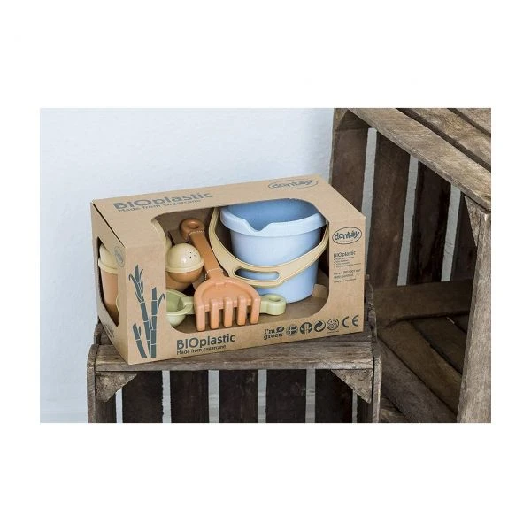 Das BIO Sandset wird in Dänemark aus Bio-Kunststoff hergestellt, einem zu 90 % aus Zuckerrohr bestehenden, nachhaltigen Rohstoff, und wurde dafür mit dem Nordischen Schwan ausgezeichnet.