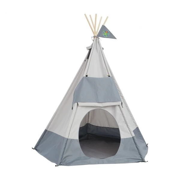 Einfach und schnell aufgebaut, überzeugt es mit seiner bequemen, gepolsterten Bodenmatte, die auch als Picknick-Decke genutzt werden kann, und seinem hochwertigen Stoff. Übrigens: Das Tipi ist so groß, dass auch Erwachsene darin Platz finden!