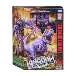 Diese Megatron (Beast) Sammelfigur mit detailliertem Biest-Modus und einem komplexen, von Dinosauriern inspirierten Look sowie einem beweglichen Kiefer mit Zähnen lädt die Fans ein, die ursprüngliche Kraft der Biester zu entfesseln … hat irgendjemand eine Zahnbürste? Die Figur lässt sich in 27 Schritten in einen durch Beast Wars inspirierten T-Rex verwandeln. Der Dino-Kopf und Dino-Schwanz der Figur verwandeln sich in klassische Klauen-Hände. Die Fans können einen Laserfeuer-Effekt hinzufügen, indem sie Battle-Effekt-Accessoires im Dinokopf platzieren (separat mit anderen Figuren erhältlich, je nach Verfügbarkeit).