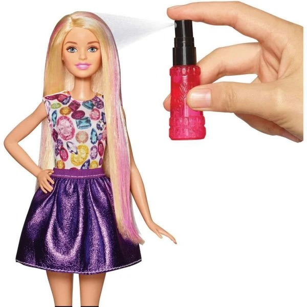 Barbie begeistert mit fantastischen Frisuren. Realistisches Zubehör wie ein Kreppeisen, ein Lockenstab und eine Bürste, die alle ohne Wärme funktionieren, ermöglichen jungen Haarstylistinnen tolle Kreationen mit Locken, Wellen und leuchtenden Farben. Einfach eine nicht zu dicke Haarsträhne mithilfe der Sprühflasche mit warmem Wasser besprühen und dann entweder in das Kreppeisen legen (zusammendrücken) oder um den Lockenstab wickeln, einige Sekunden halten und wieder lösen. Anschließend ist Barbies Haar wunderschön gewellt oder gelockt. Die 3 enthaltenen Haarbänder eröffnen noch mehr Stylingmöglichkeiten. Für einen Look wird das Haar einfach angefeuchtet und ausgebürstet, damit der Spaß von vorn beginnen kann. Die enthaltene Barbie-Puppe trägt ein modisches Kleid mit bunt gemustertem Oberteil und schimmerndem Rock sowie schicke Schuhe – damit kommt jede Frisur perfekt zur Geltung.