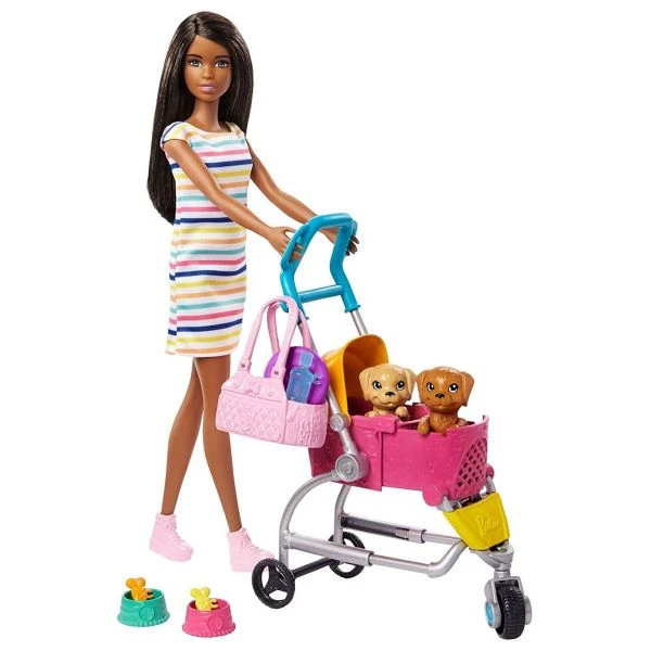 - Dieses Barbie Hundebuggy Spielset mit einer Barbie-Puppe, zwei Hündchen, einem Wagen für die Hündchen und Zubehörteilen bietet tollen Spielspaß für Tierliebhaber!