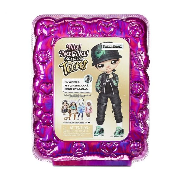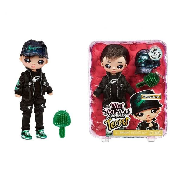 Willkommen im Lifestyle von Plüsch und Glamour. Wir haben ein Faible für tolle Mode. Egal, ob wir mit unseren Freunden abhängen oder über den flauschigen Teppich laufen, wir sehen immer gut aus. Denn wir wollen auffallen! Na Na Na Surprise Teens sind hochwertige, 28 cm große, weiche Modepuppen mit großer Persönlichkeit und glamourösem Stil. Parker Scorch ist von Drachen inspiriert. Er hat coole, schwarze Haare und aufgedruckte Gesichts- und Kleidungsdetails. Er trägt einen schwarzen Hut, Streetwear-Mode und freshe Treter. Tolle Geschenkidee! Sein Anhänger verrät seinen Namen und Geburtstag und erzählt ein wenig über ihn Sammle alle 5 schönen, weichen Teens-Modepuppen.