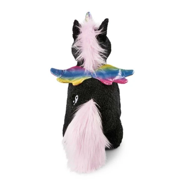 So, wie Yin und Yang. Mit bunten Regenbogenelementen und ihrem langflorigem Glitzerplüsch nehmen Rainbow Yin & Rainbow Yang dich mit auf den Weg von der lauten, kalten Außenwelt in dein warmes, farbenfrohes Inneres – den Ort deiner Mitte. Das schwarze Kuscheltier Einhorn Yin ist ein super Kuschelfreund mit rosaner Mähne und regenbogenfarbenen Flügeln. Das Yin-Yang Zeichen prangt auf seinem Hinterteil und verleiht ihm einen tollen unverwechselbaren Look! Als Highlight glitzert sein schwarzes Fell auch noch!
