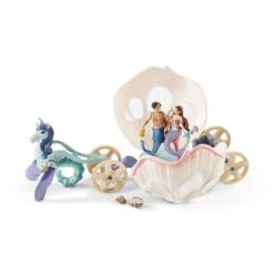 Sieh nur, wie die königliche Muschelkutsche im Morgenlicht glitzert. Man kann sie je nach Anlass dekorieren. Isabelle streichelt das Seepferd, dann steigt sie ein und gibt das Zeichen zur Abfahrt. Beinahe lautlos rollen die Räder über den weißen Sand des Meeresbodens. Manchmal spannt Isabelle auch die Kutsche ab und reitet alleine ins Abenteuer. Sie strahlt vor Freude, denn sie und der Meermann Aquarius wollen hinaus zu den Meeresblumenfeldern fahren, um dort zu picknicken. Das wird sicher ein wunderbarer Tag. Die Schleich Figuren sind alle detailgetreu modelliert, liebevoll handbemalt und stehen für pädagogisch wertvolles Spielen.