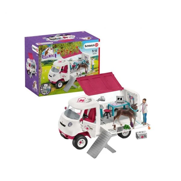 Sie untersucht das Tier mit dem mobilen Röntgengerät, das sie im großen Laderaum transportiert hat. Damit das Fohlen schnell wieder gesund wird, spritzt sie ihm ein Medikament aus dem Arztkoffer und hält die Diagnose anschließend in ihrem Laptop fest. Die Schleich Figuren sind alle detailgetreu modelliert, liebevoll handbemalt und stehen für pädagogisch wertvolles Spielen.