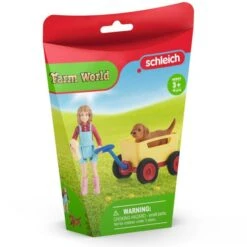 Mit dem Bollerwagen-Ausflug von schleich® FARM WORLD erleben FW Sarah und ihr Hundewelpe Bello tolle Abenteuer