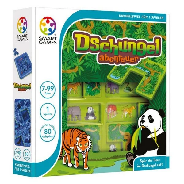 Finde die Tiere im Asiatischen Dschungel – so wie in der jeweiligen Aufgabe angegeben! Insgesamt 80 abwechslungsreiche Dschungelprüfungen bietet das Spiel –mit zwei unterschiedlichen Spielbrettern, in die die Puzzleteile hineinzulegen sind. Die „Tagaufgaben“ haben noch 4 verschiedene Felder, während die „Nachtaufgaben“ nur noch ein Spielfeld aufweisen und schwieriger zu lösen sind.