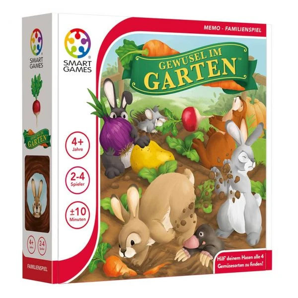 Viel Gewusel im Gemüse-Garten. Wo stecken die Gemüse-Sorten nur alle? Die Hasen sind hungrig und suchen mächtig nach Futter: hilf‘ ihnen, die verschiedenen Gemüse zu finden! Aber aufgepasst: auch Tiere im Erdboden möchten das Gemüse für sich nutzen!