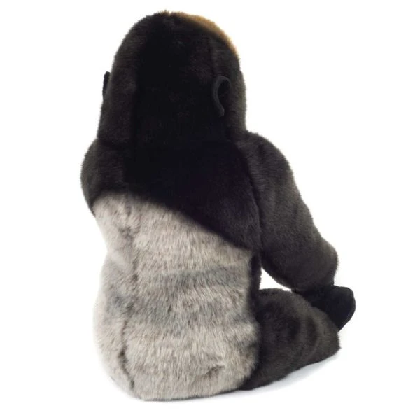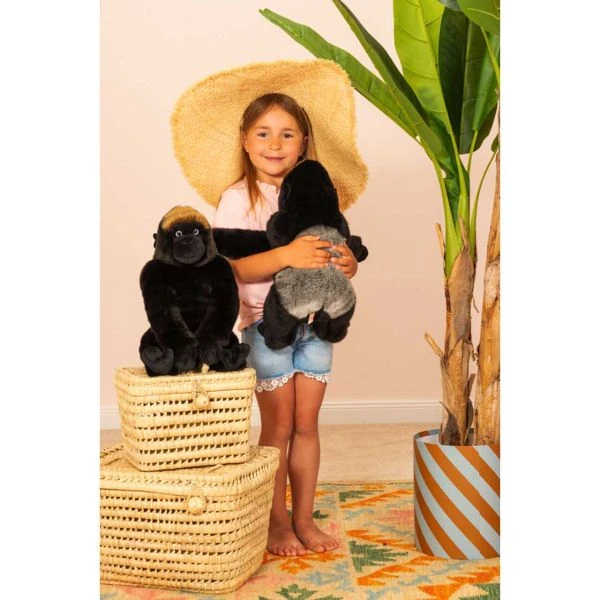 Der 35 cm große Berggorilla von Teddy Hermann schafft ebenso Eindruck im Kinderzimmer, schafft es durch seinen niedlichen Blick auch skeptische Kinderaugen zu überzeugen