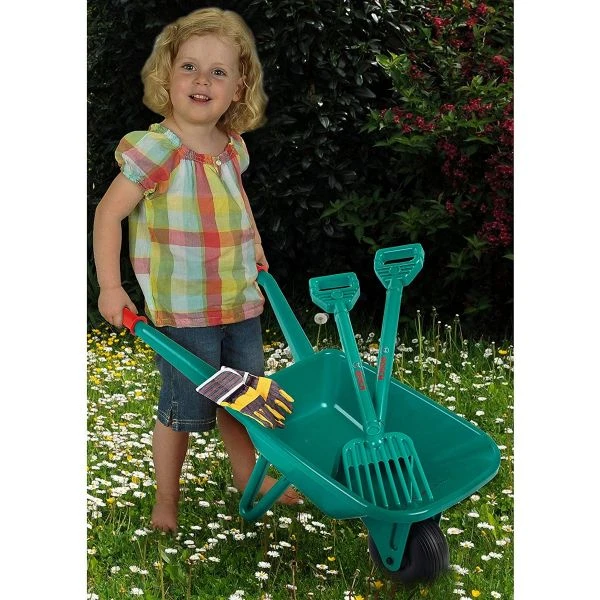 4-teilig, bestehend aus Schubkarre (ca.70cm), Schaufel, Rechen und Kindergartenhandschuhe.