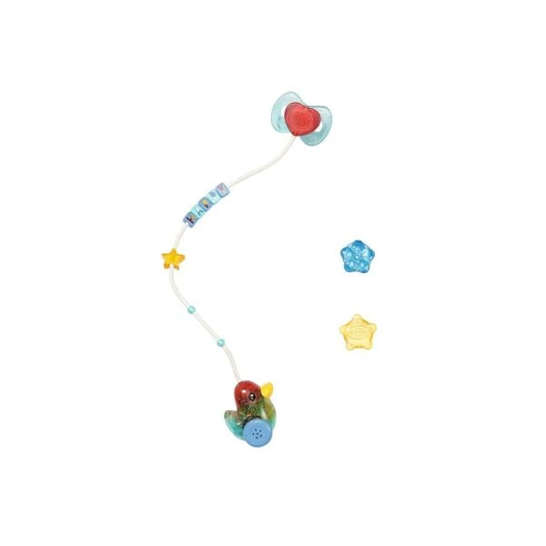 Die kleine Partyprinzessin ist ganz glücklich, dass so viele Gäste gekommen sind. Glücklich und zufrieden, englisch happy, so steht es auch auf dem Schnullerband. Das Symbol auf dem Mundstück ist austauschbar und leuchtet. Kaum hat sie den Schnuller zwischen den Lippen, schon sind Nuckel-Geräusche zu hören. Die bunte Ente kann mit einem Clip am Strampler befestigt werden. Süße Träume!