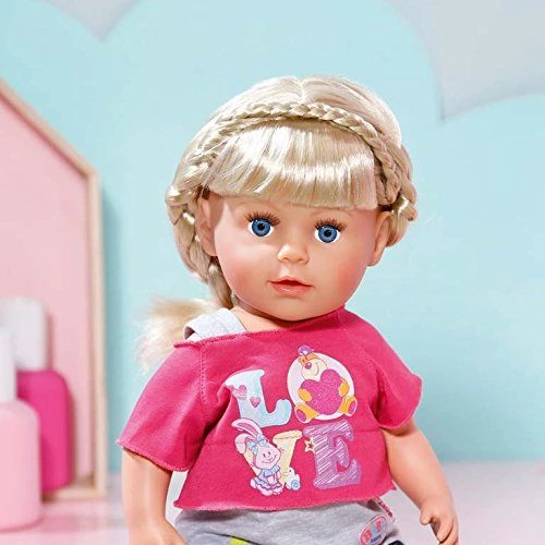 Wie jedes kleine Mädchen hat sich BABY born® schon immer eine Schwester gewünscht mit der sie Kuscheln und Reden kann, Kleidung und Geheimnisse teilen kann und viele spaßige Spielstunden erleben kann. Und hier ist sie: BABY born® Interactive Sister. Sie hat wunderbar lange Haare die man toll kämmen und frisieren kann.