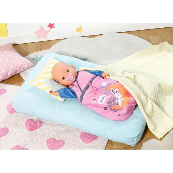 „Gääähn!“ Oh, es ist schon spät, BABY born muss dringend ins Bettchen. In ihrem kuscheligen Schlafsack döst es sich besonders gut. Hase Benno hat es sich als Druck auch schon mal auf dem Schlummermond bequem gemacht. Die grauen Abnäher sind ein weiteres Design-Highlight. Dank des Kletts an den Trägern kann die kleine Träumerin einfach in den Schlafsack gelegt und wieder herausgenommen werden. Gute Nacht!